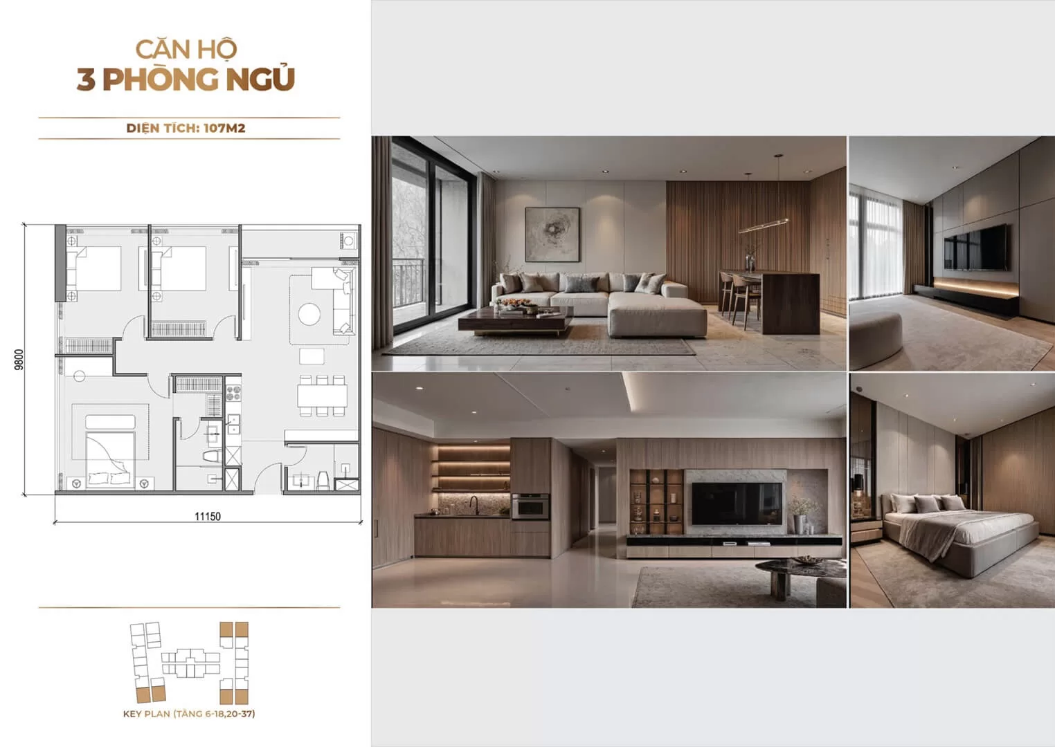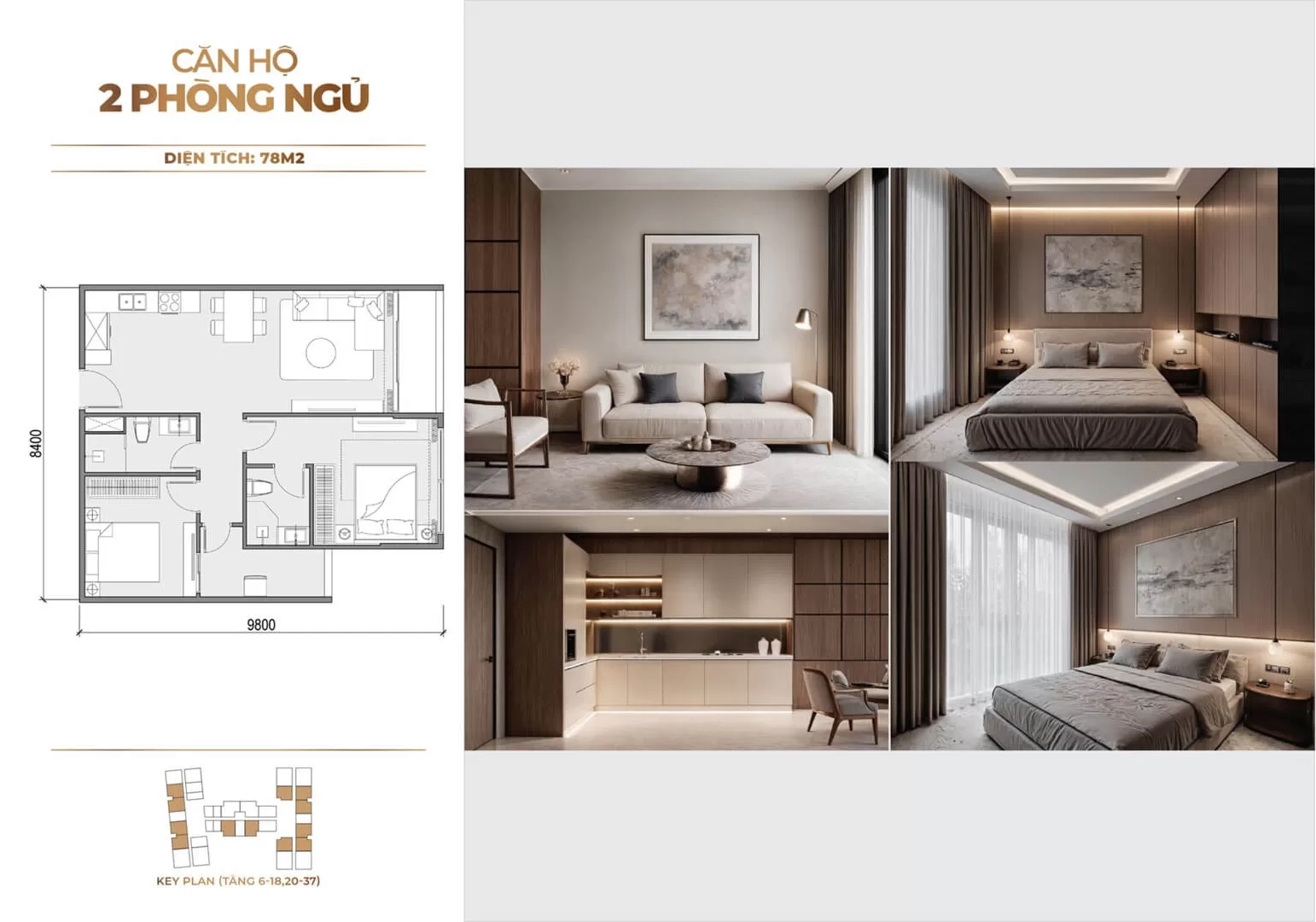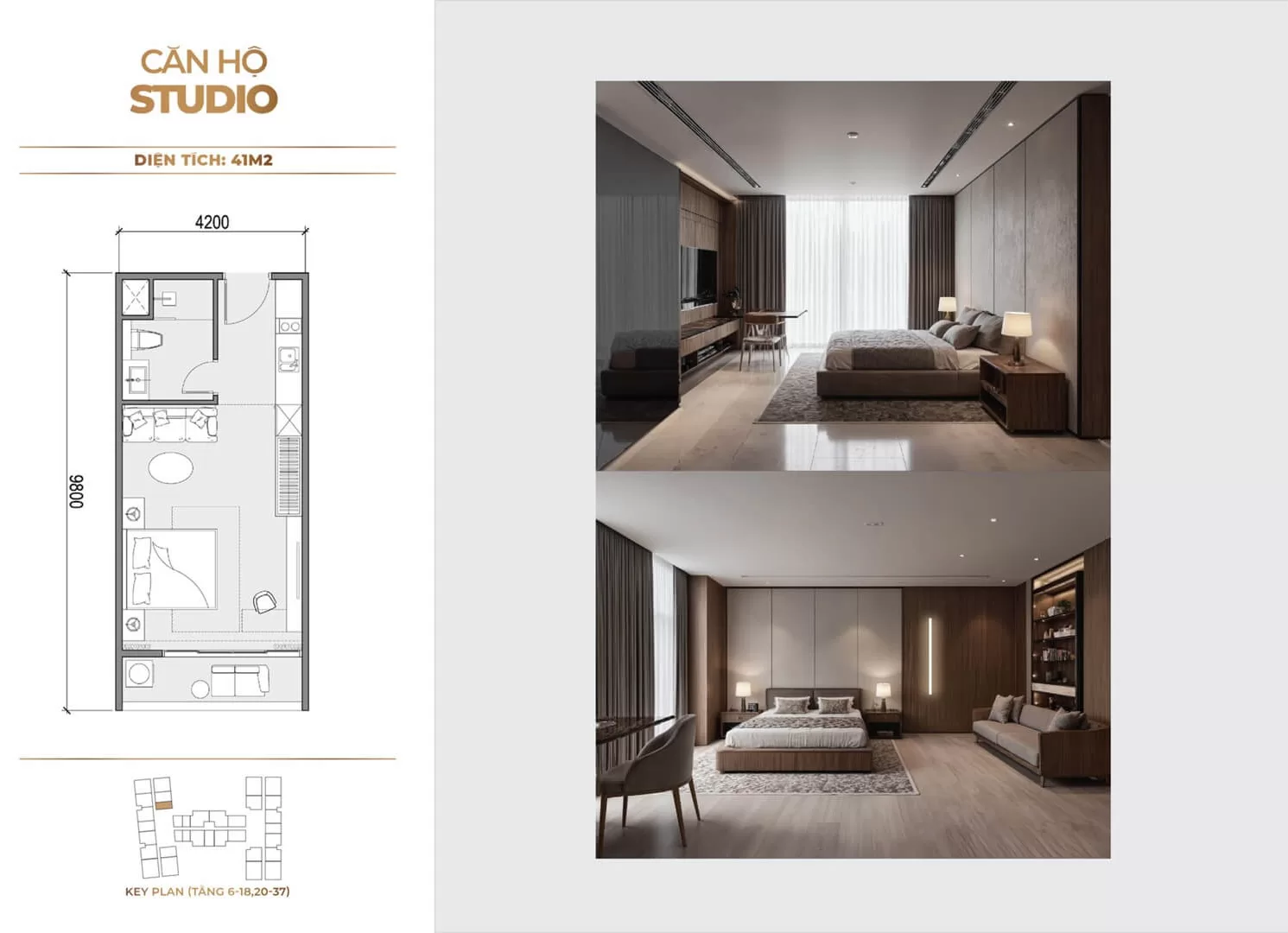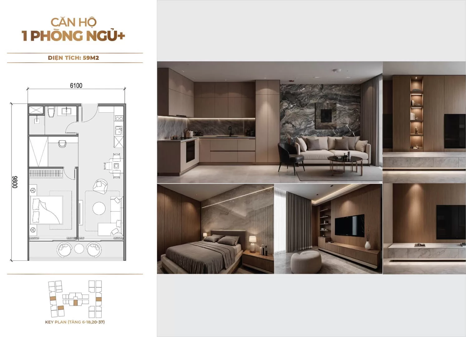 - Loại hình: Căn hộ từ 1 đến 3 phòng ngủ (bao gồm căn studio, 1 phòng ngủ và 2 phòng ngủ)